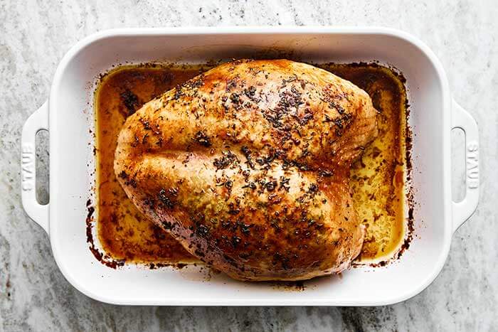 - There’s no need to brine the turkey beforehand or baste the turkey while roasting (though of course you can if you’d like), as the herb butter mixture keeps the turkey breast moist as it cooks in the oven.