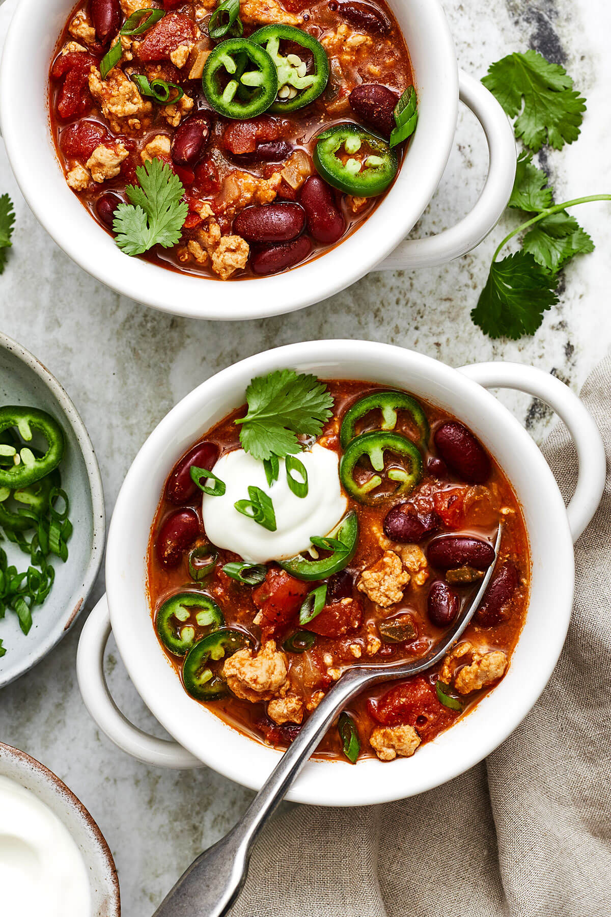 Turkey Chili: Ground turkey is a blank slate for flavor, and this turkey chili recipe is ultra-flavorful and loaded with good-for-you ingredients.